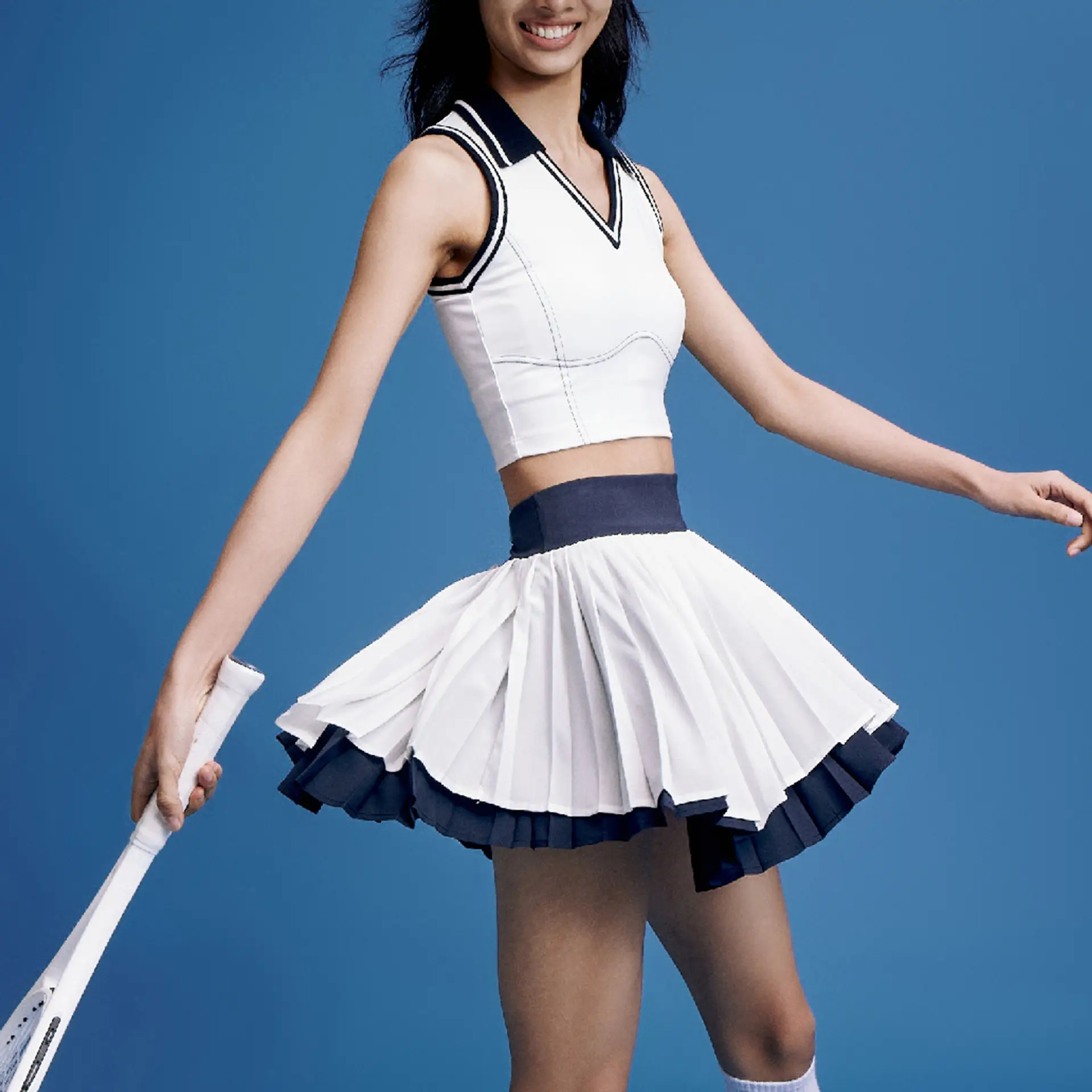 Women Summer Polo Shirt Pleated Skirt Tennis Outfit Golf Clothing Badminton Activewear Gym Set