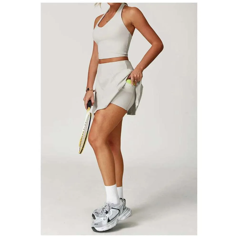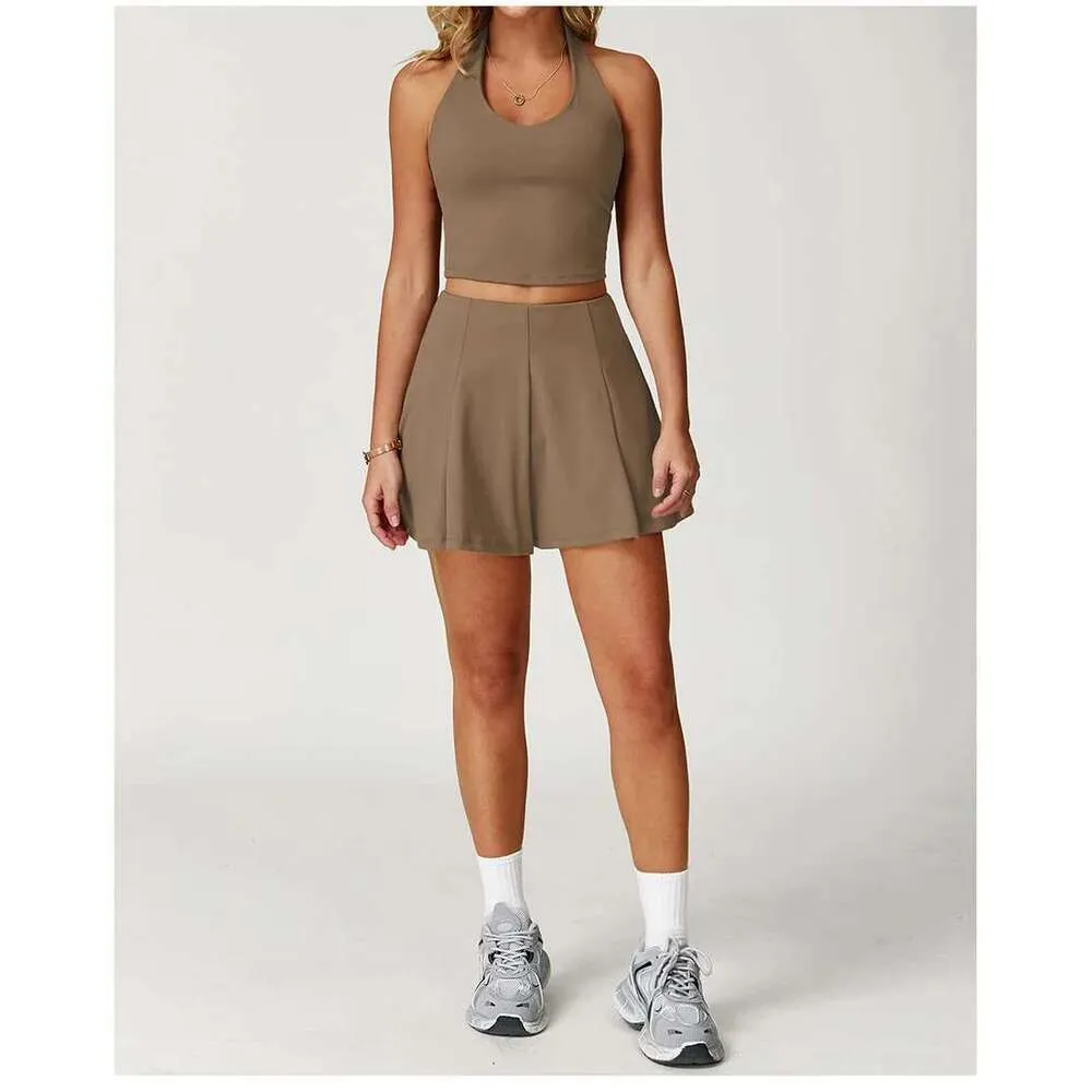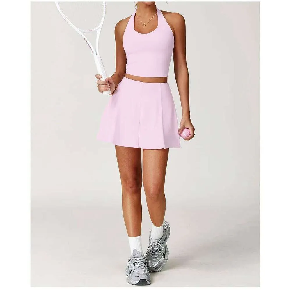 Women Yoga Tracksuit Sets Tennis Skirt Shorts Sports Outfit Gym Wear Golf Dress 2 Piece Workout Apparel