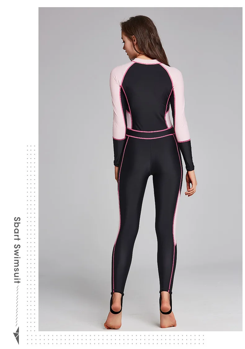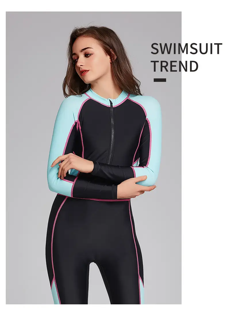 Women's One Piece Diving Wetsuit Sunscreen Long Sleeve Swimwear Floating Slim Fit Swimming Suit