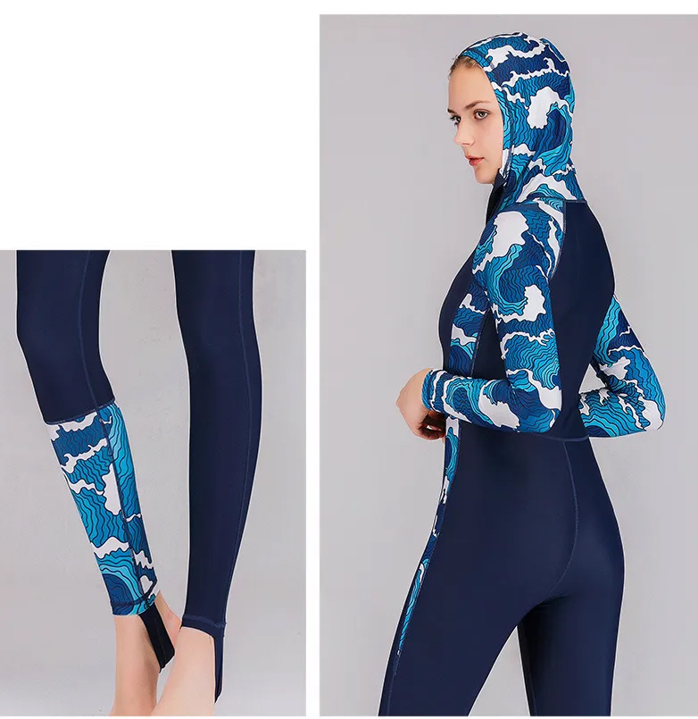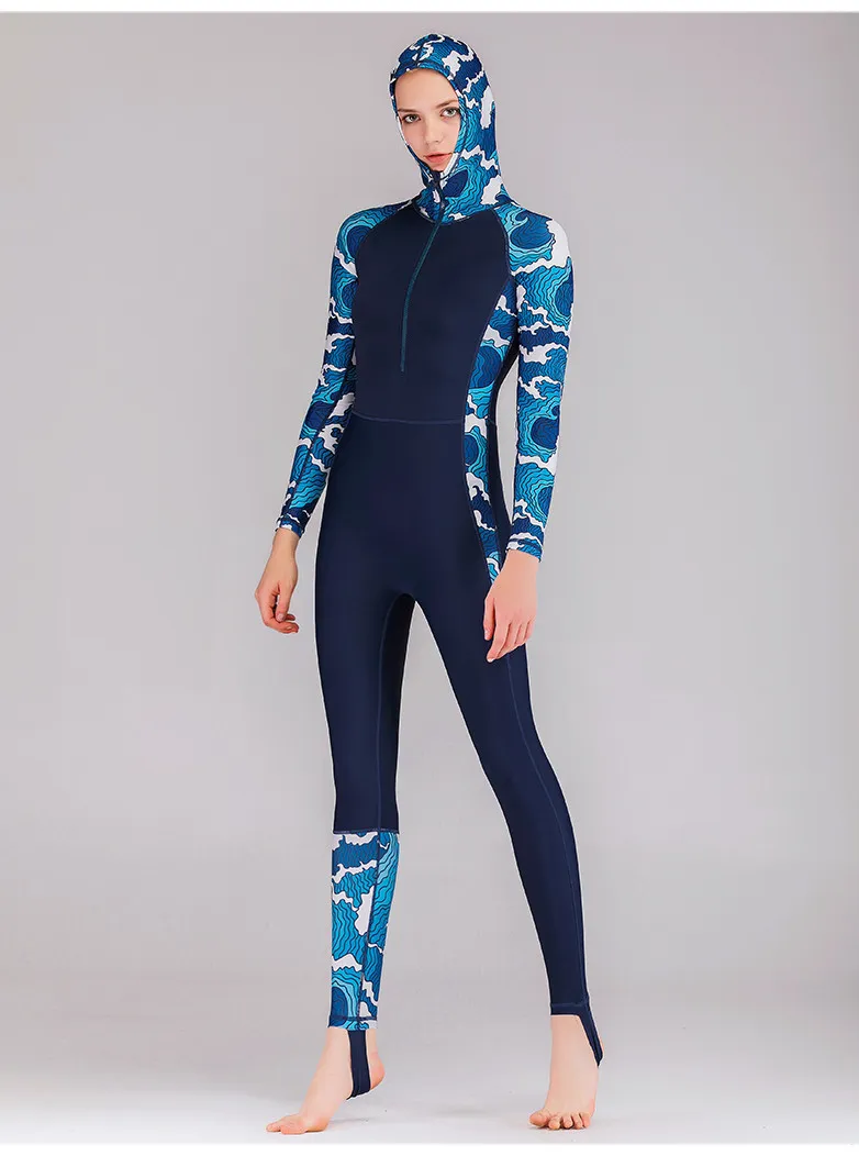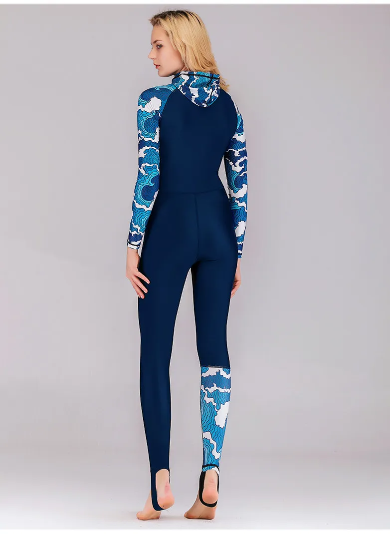 Long Sleeve Wetsuit with Hoodie for Women, Zipper Full Body Swimsuit for Snorkeling and Diving