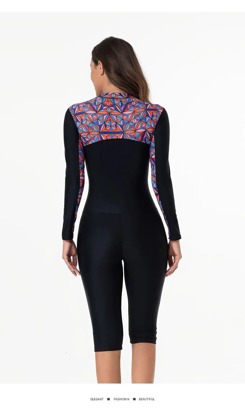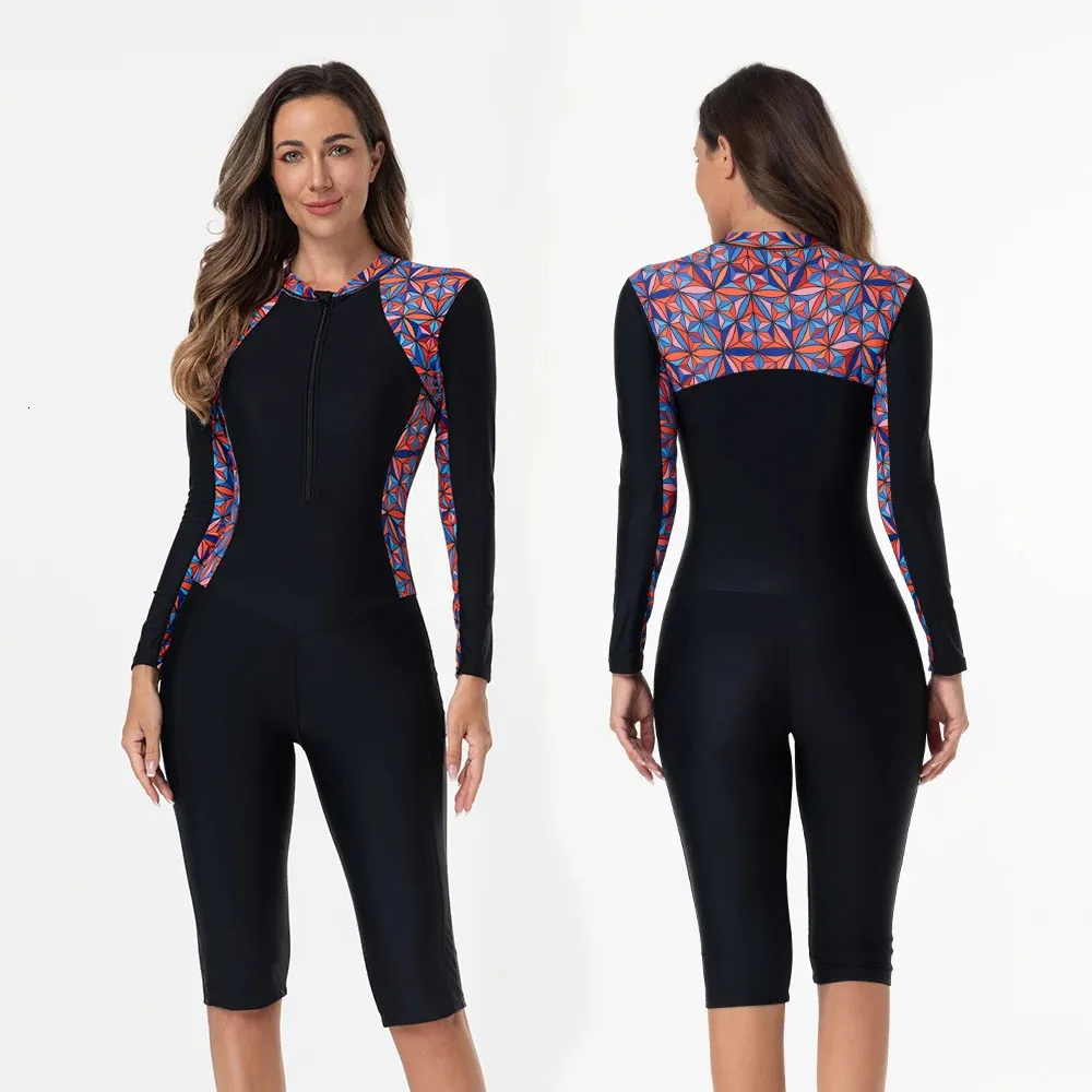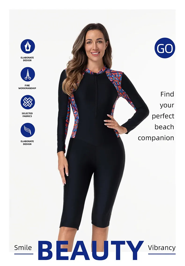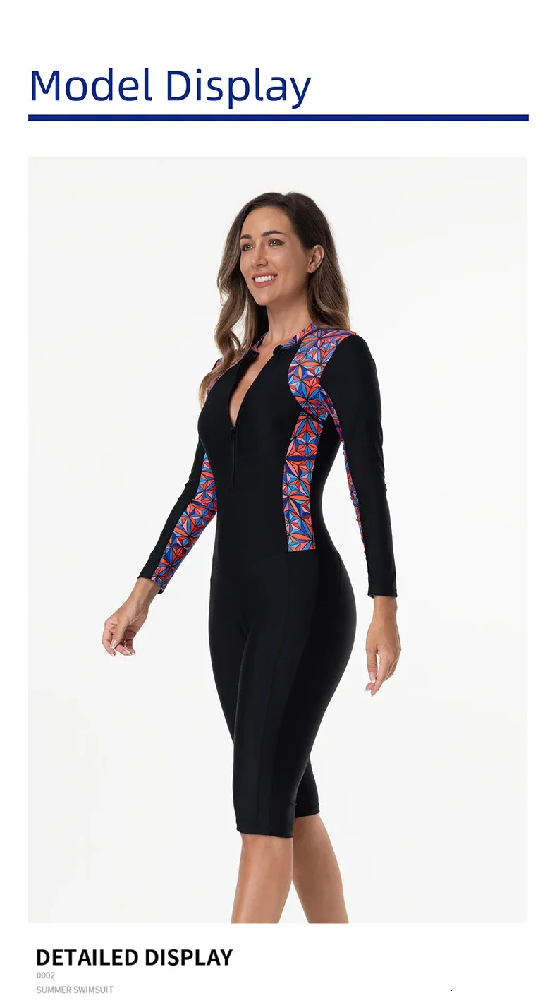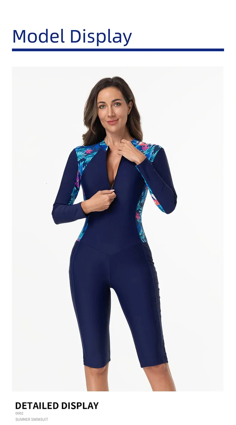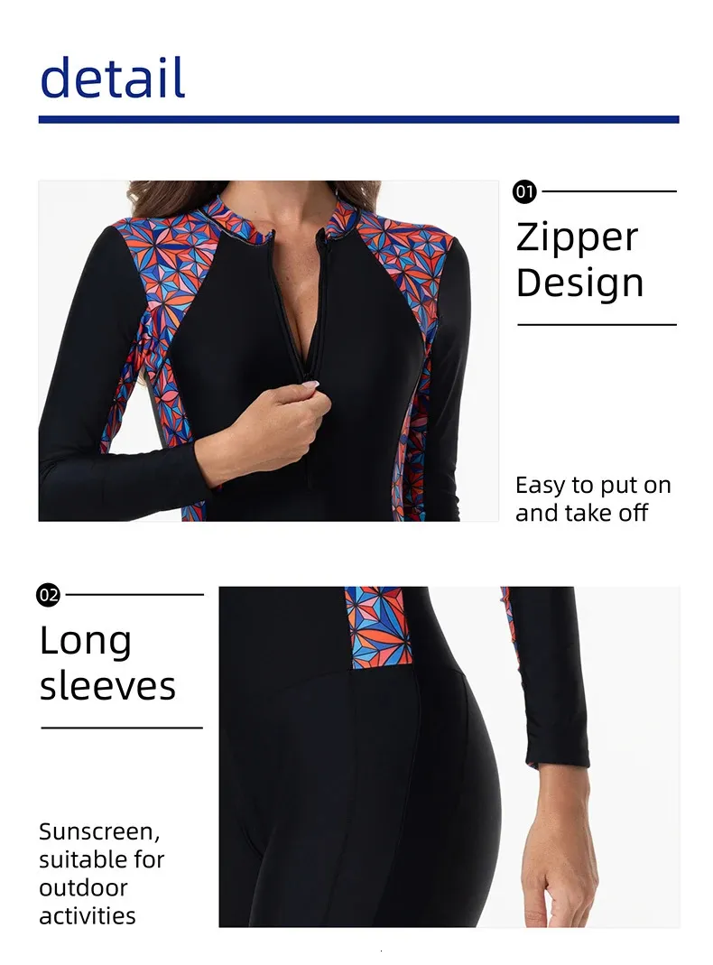 Women One-Piece Swimsuit With Sleeve Bathing Suit Female Beachwear Sport Style Swimwear Surfing Diving Suit