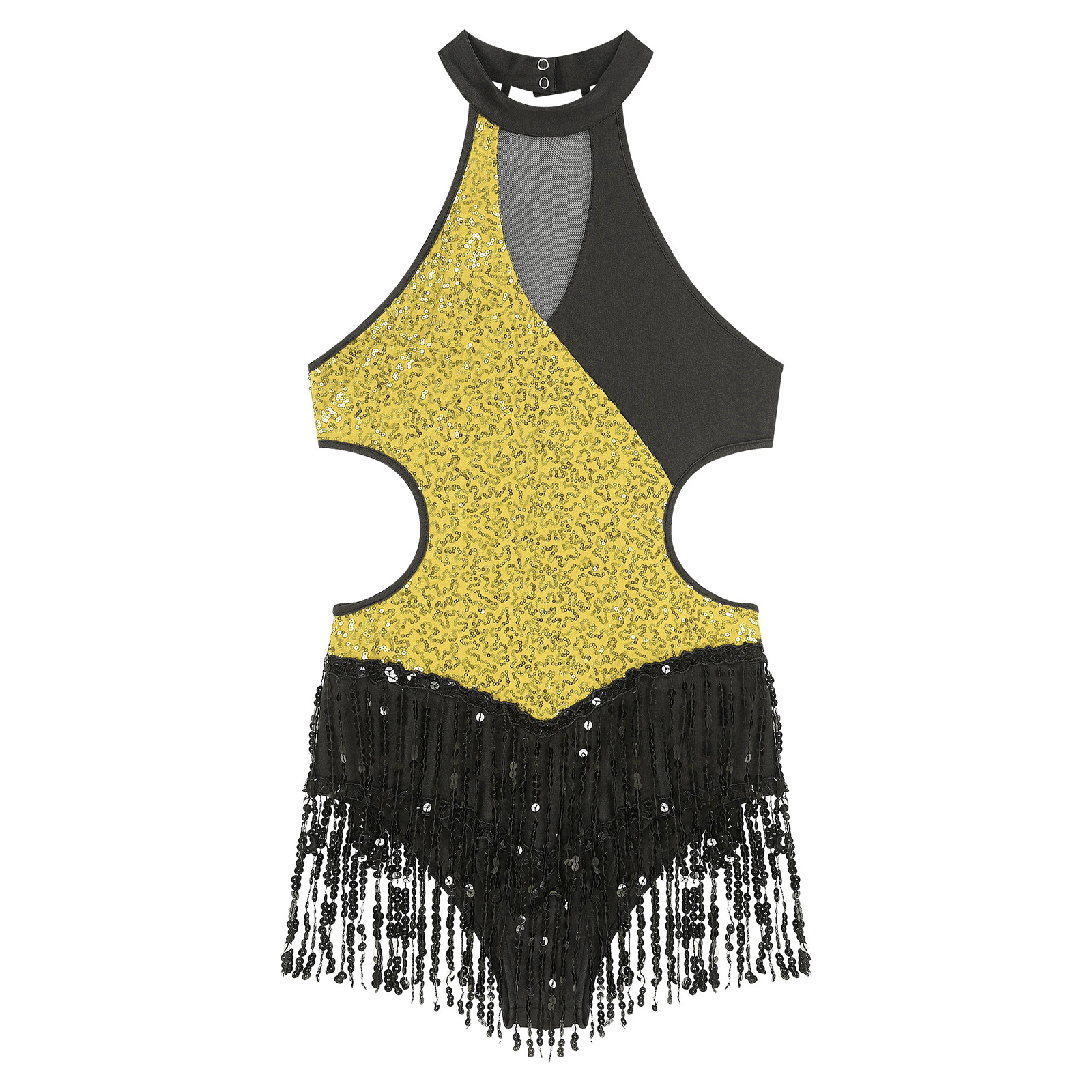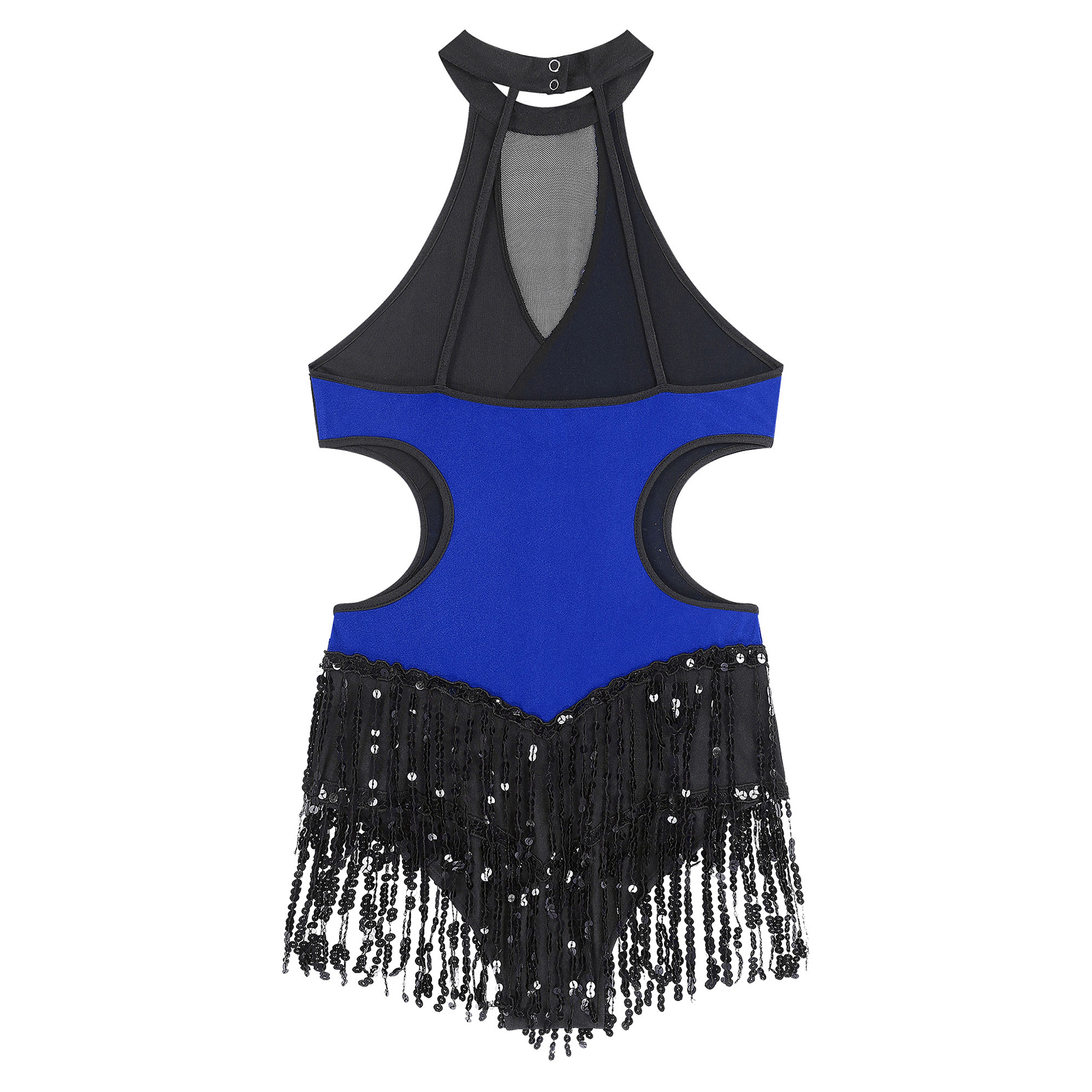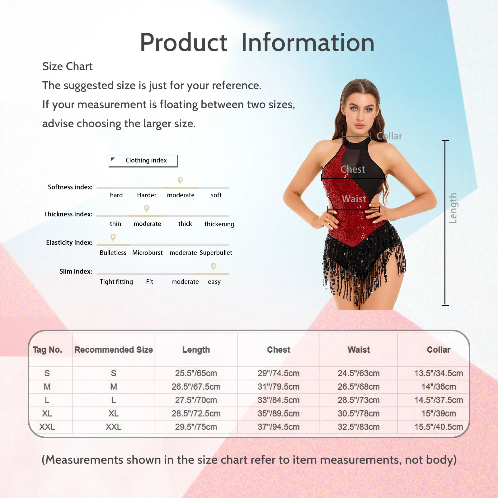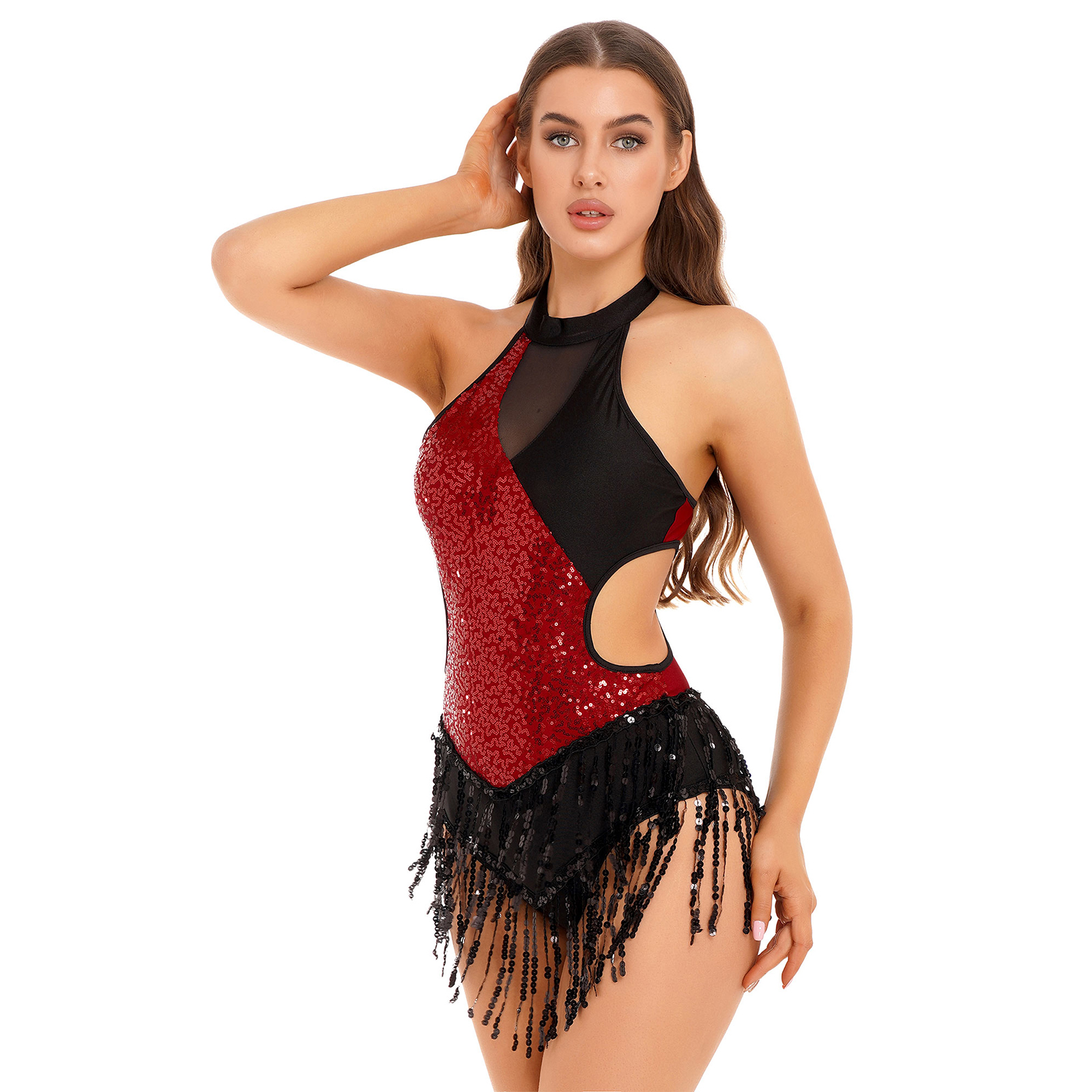 Women's Sleeveless Sequin Tassel Bodysuit Ballet Dance Performance Costume
