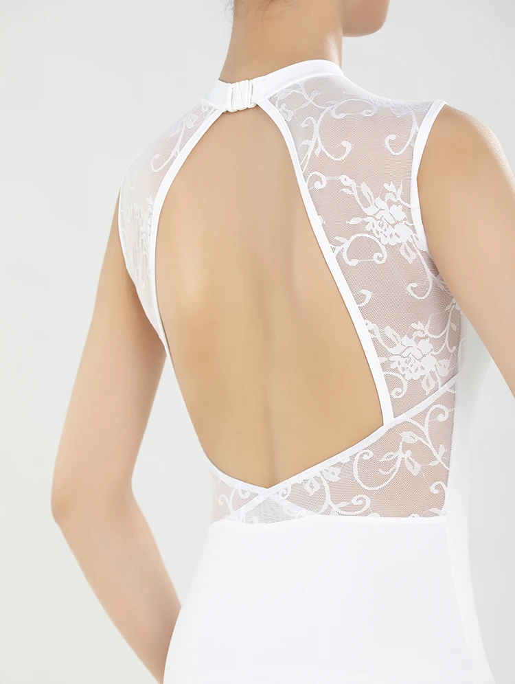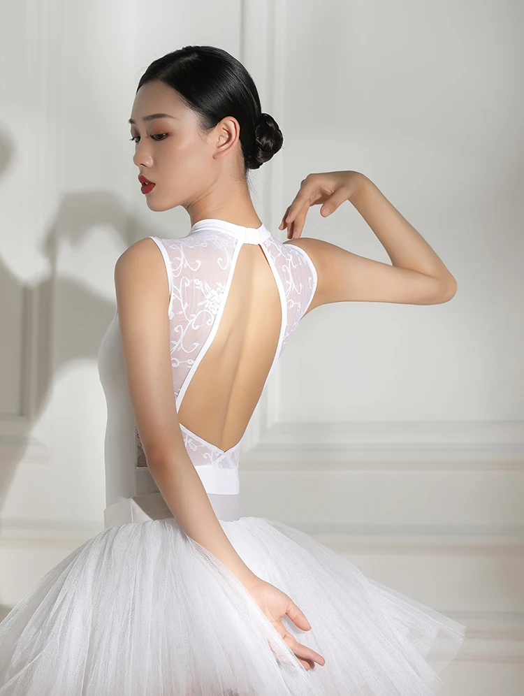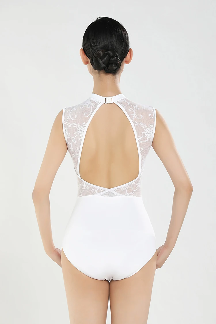 Elegant Sexy Ballet Leotard for Women, White Gymnastics Jumpsuit, Classical Dance Ballerina Costume for Gymnastics Team