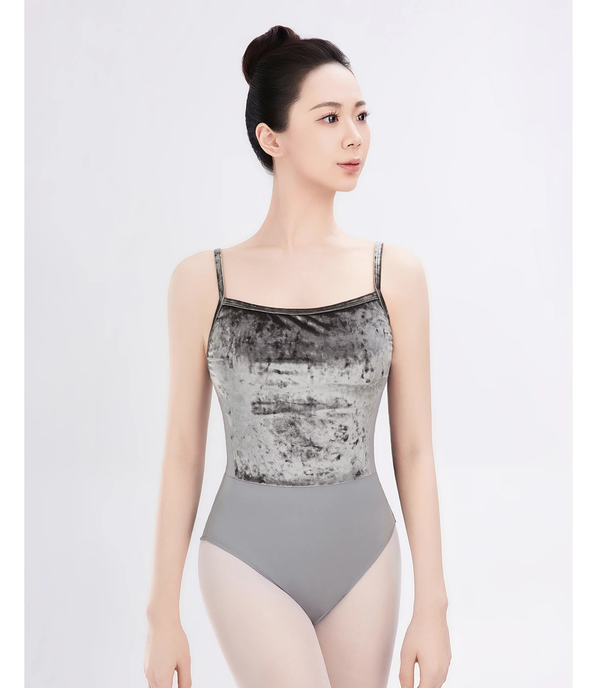 Velvet Patchwork Camisole, Ballet Leotard for Women, High Neck Sleeveless Dance Leotard
