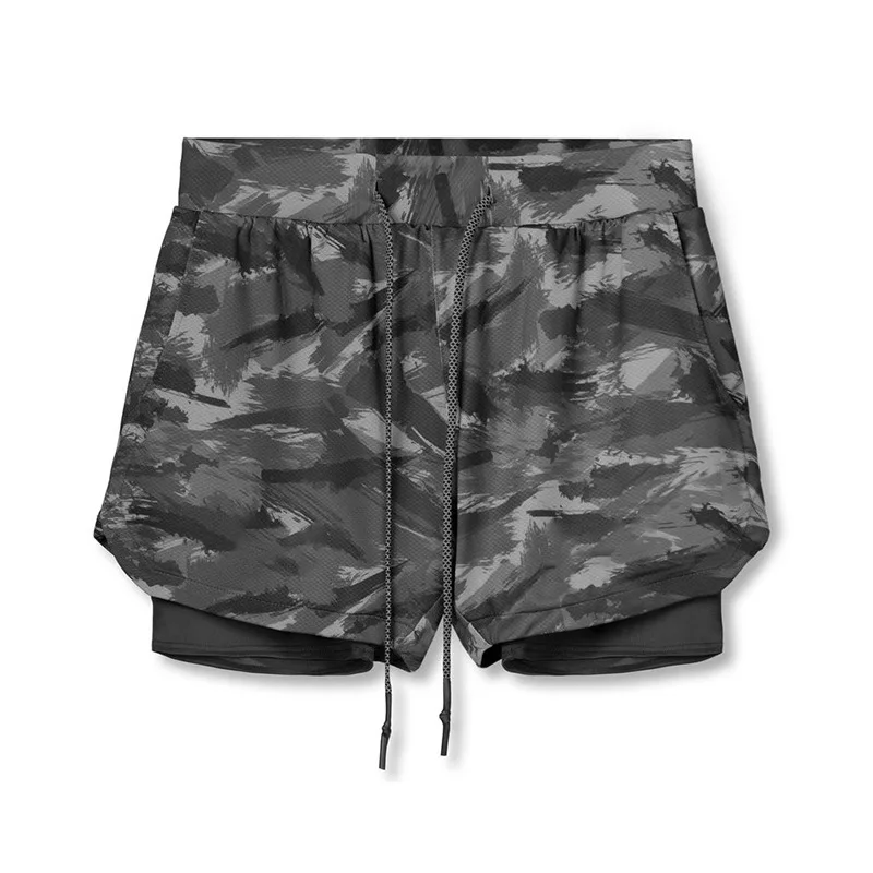Men's Quick-Drying Double-Layer Beach Shorts, Fitness Running Shorts, Casual Shorts