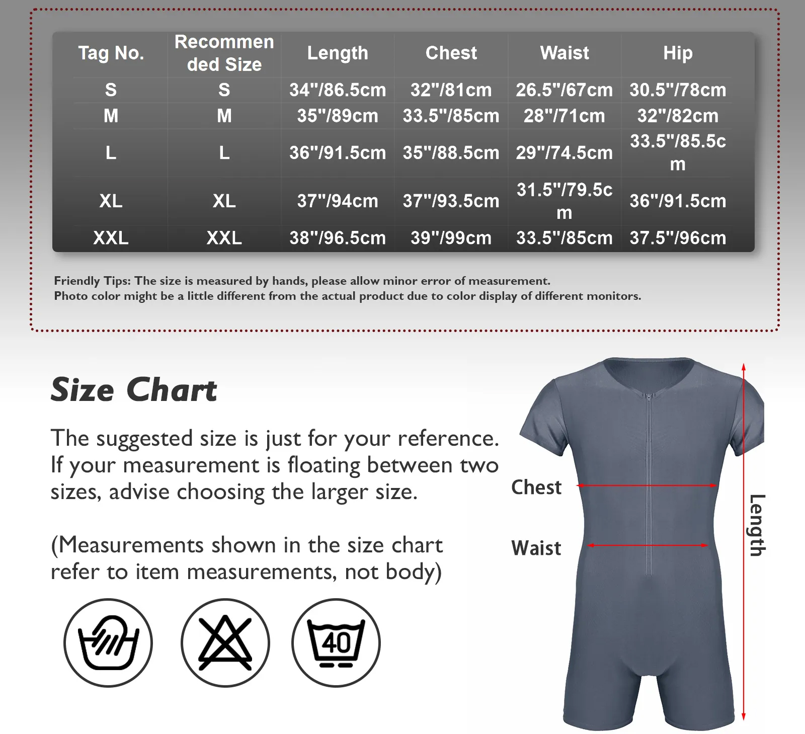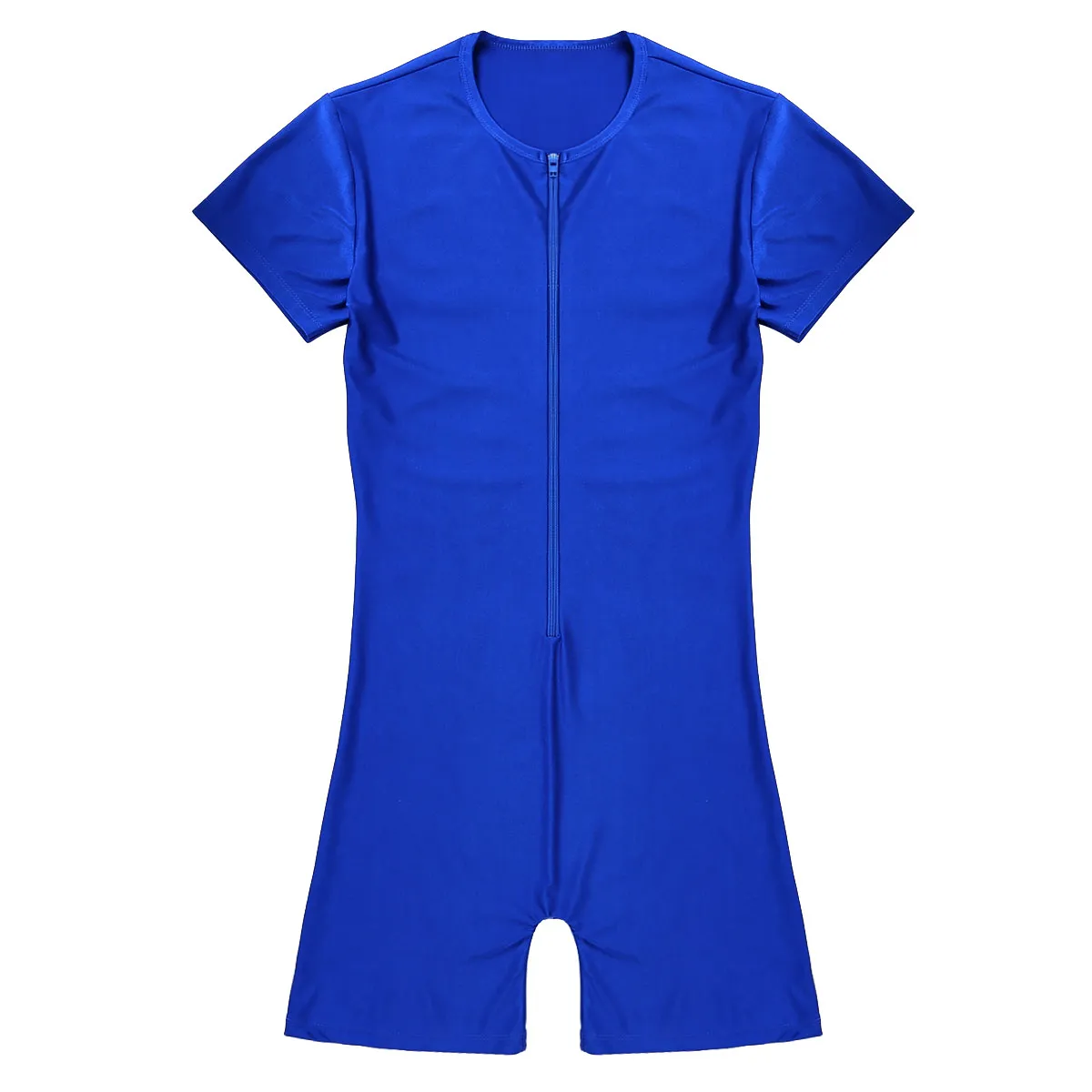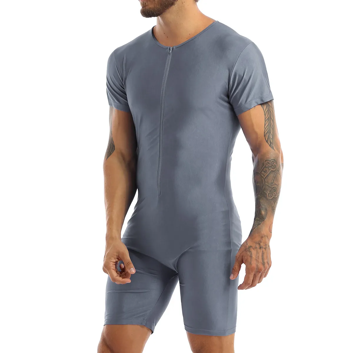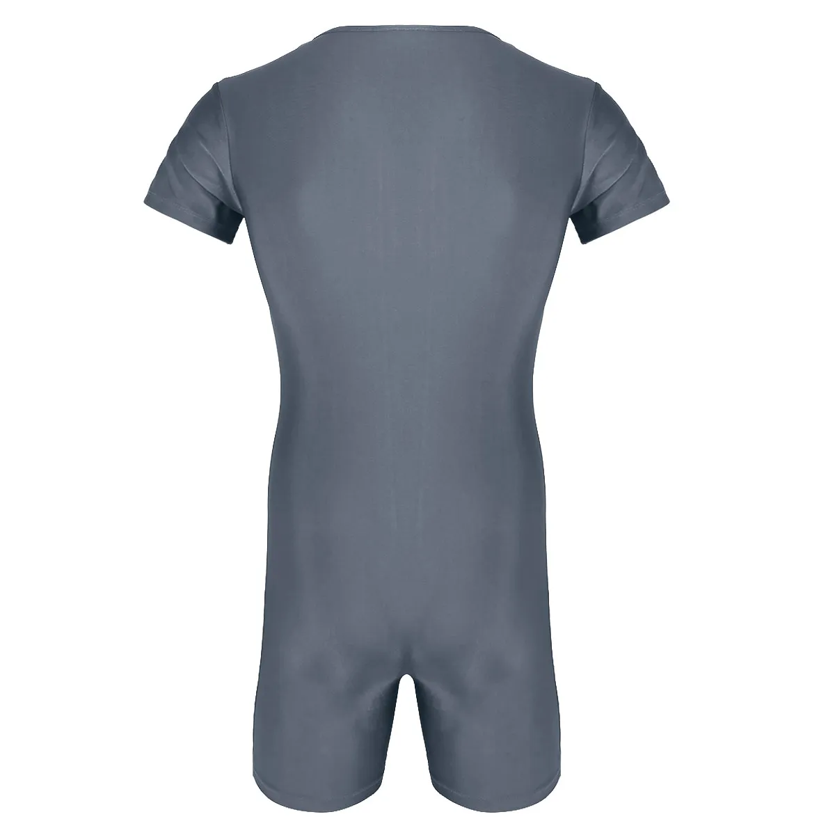 Men's Soft Swimwear Bodysuit, Short Sleeve Zipper Boxer Jumpsuit, Rash Guard Wetsuit for Pool, Beach, and Surfing