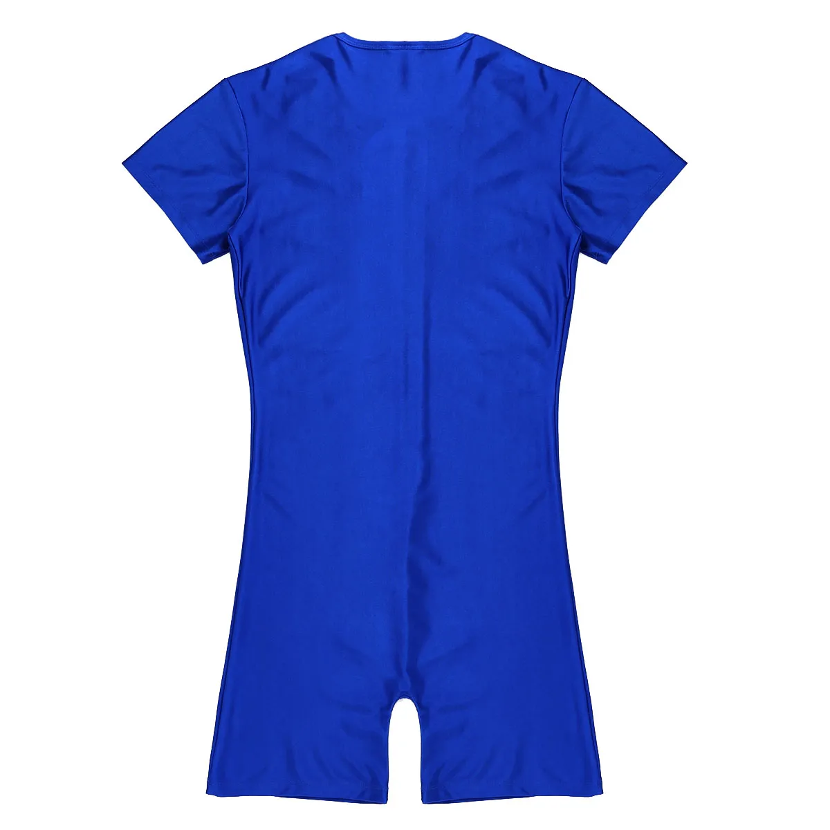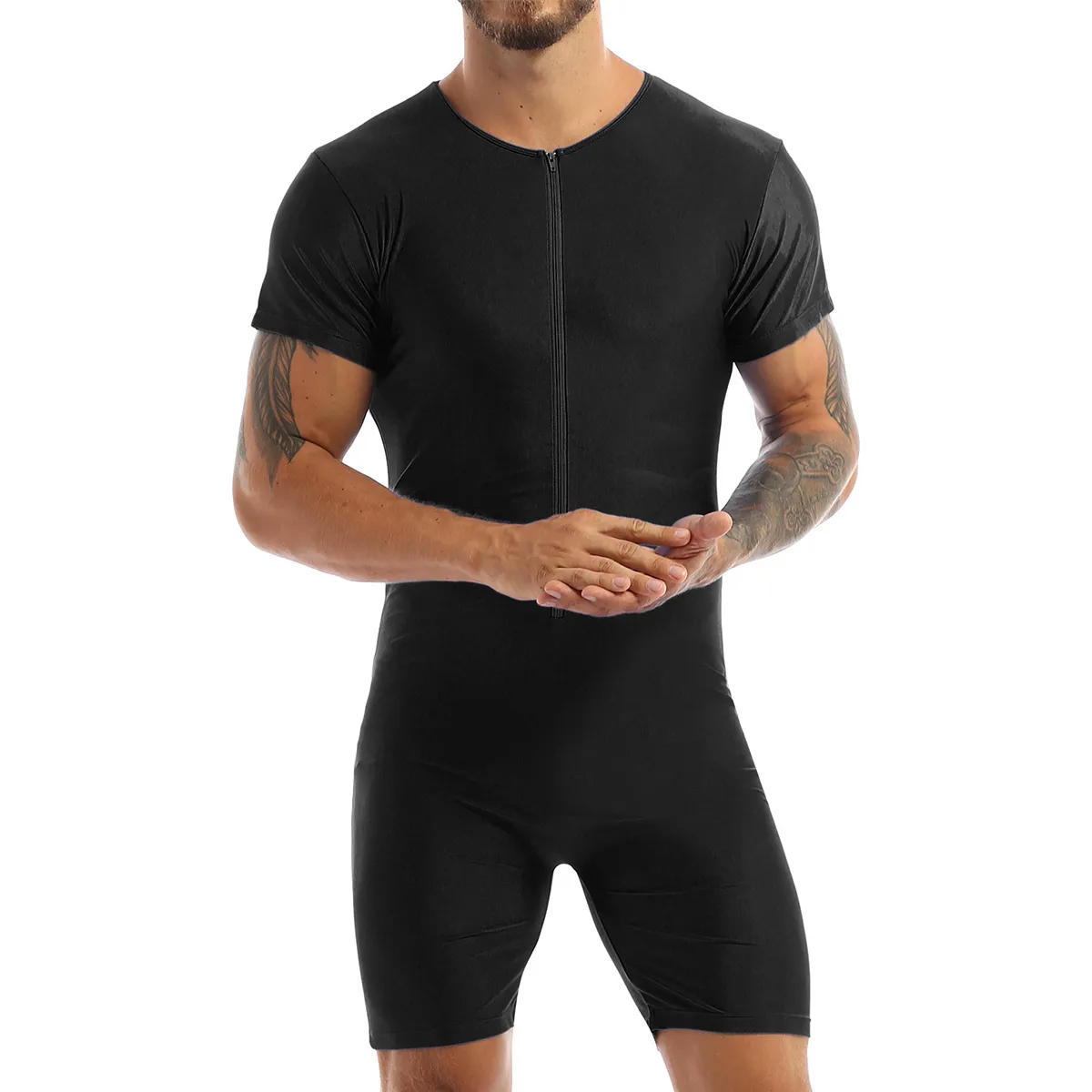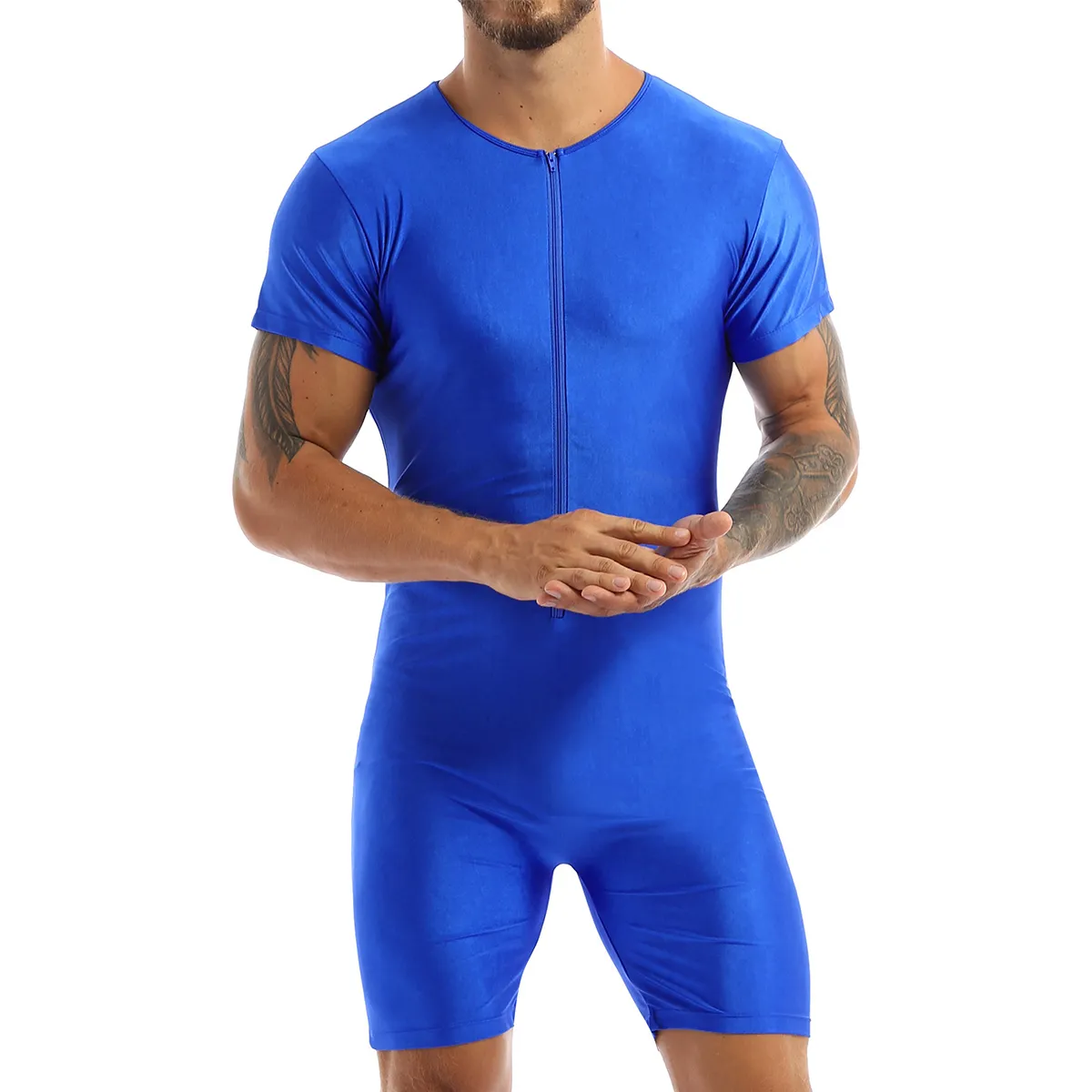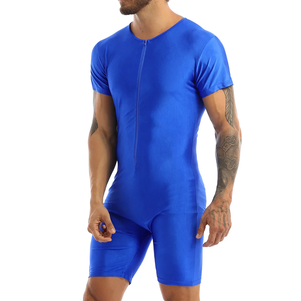 Men's Soft Swimwear Bodysuit, Short Sleeve Zipper Boxer Jumpsuit, Rash Guard Wetsuit for Pool, Beach, and Surfing