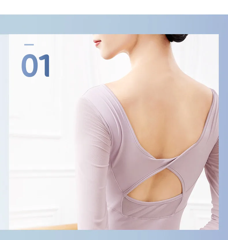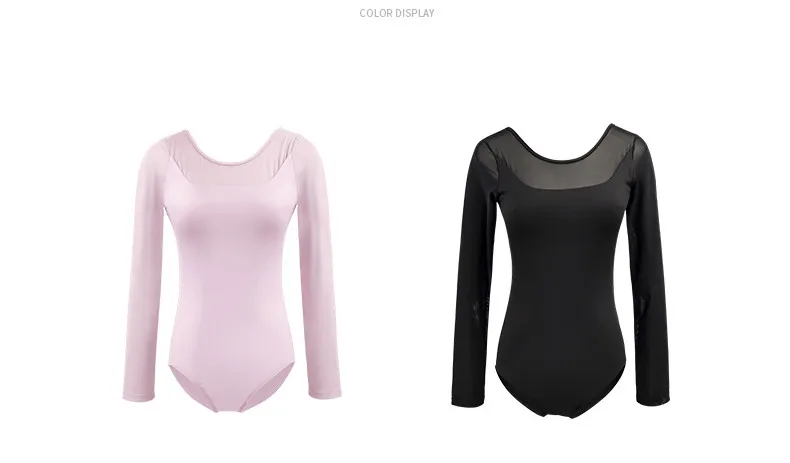 Women's Ballet Leotard Mesh Patchwork Long Sleeve Dance Leotard Gymnastics Wear Adult