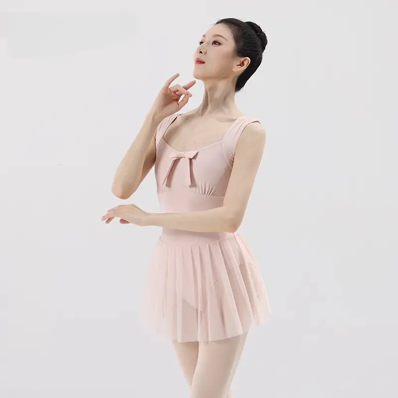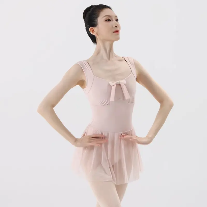 Adult Ballet Leotard with Mesh Suspender Design for Dance Practice, Gymnastics Bodysuit