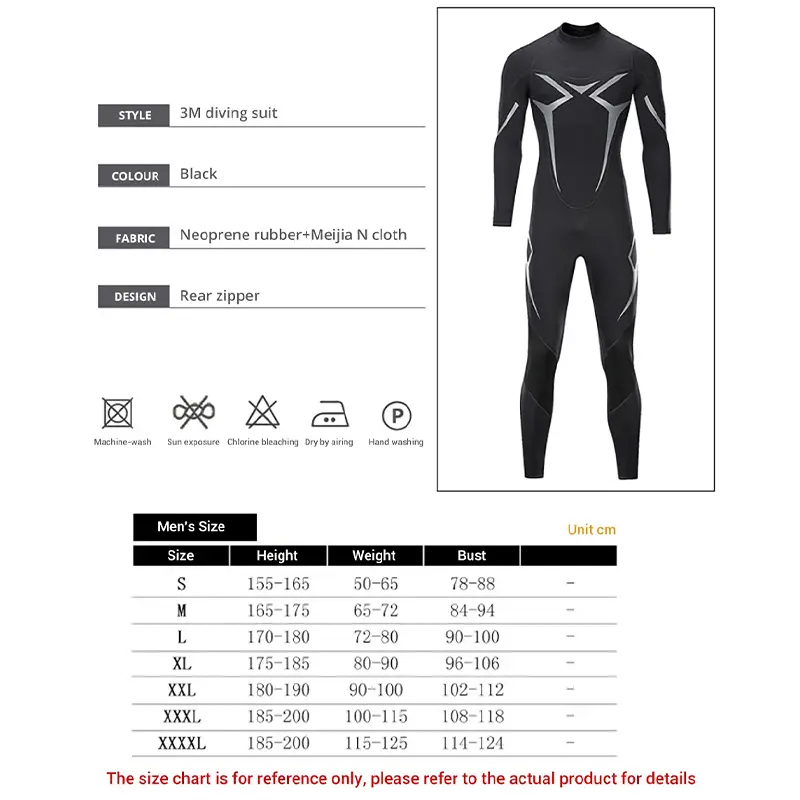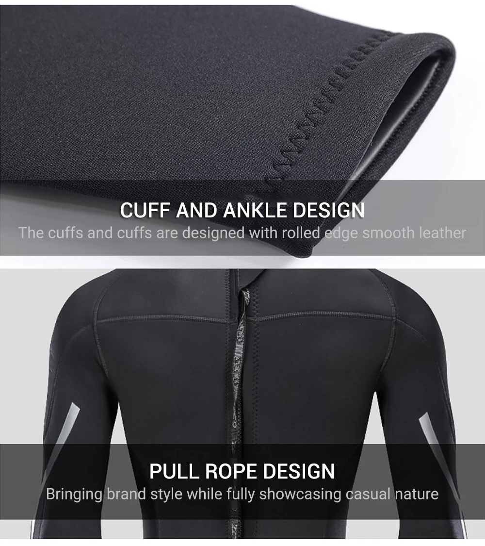 3mm Neoprene Wetsuit for Men, Long Sleeve One-Piece, Ultra-Elastic Diving Suit for Swimming and Surfing