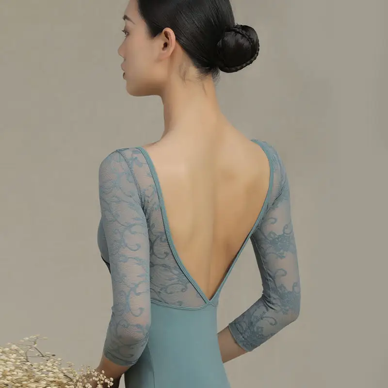 Women's Ballet Leotards Adult Three-Quarter Sleeve Dance Leotard Gymnastics Wear